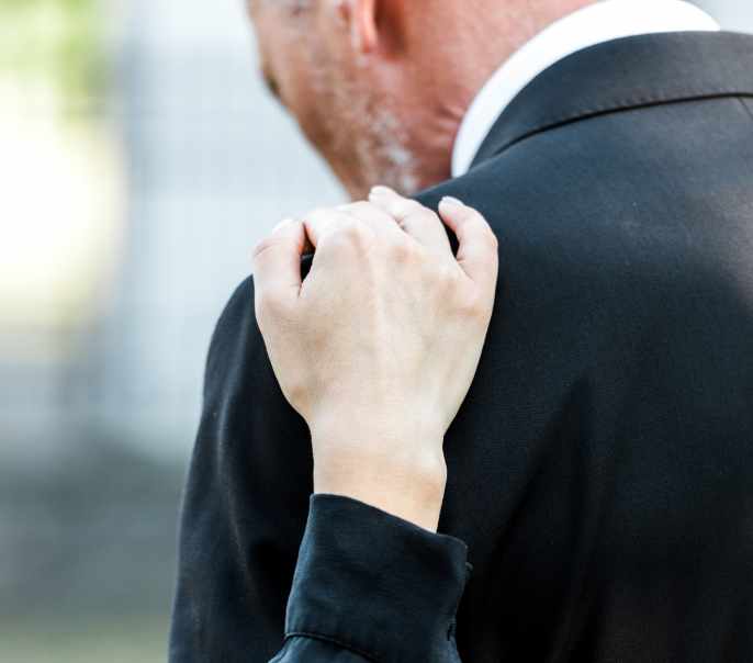 Eine Umarmung und der kurze Satz „Ich fühle mit dir und denke an dich“ sind beim persönlichen Kondolieren oft angemessener als viele Worte.