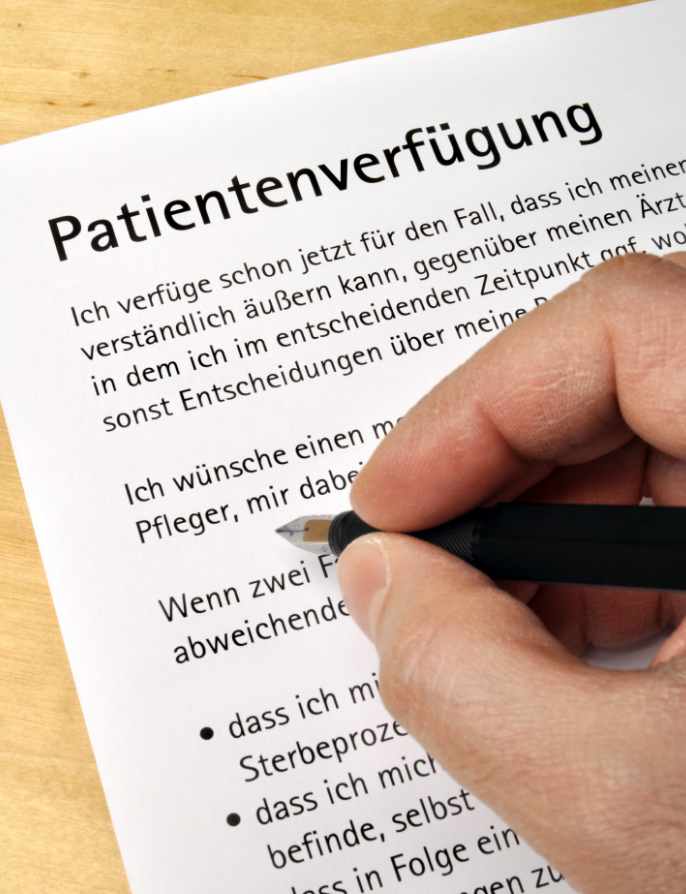 Die Patientenverfügung legt fest, welche lebensverlängernden Maßnahmen im Ernstfall gewünscht sind oder abgelehnt werden. Sie ist für die behandelnden Ärzte rechtlich bindend.