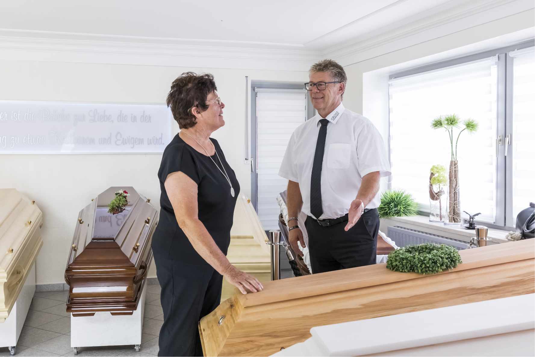 Je nach Art der Bestattung und Umfang der gewünschten Leistungen können die Gesamtkosten für die Bestattung und Trauerfeier unterschiedlich ausfallen. Bei uns finden Sie traditionelle und moderne Särge sowie Urnen aus unterschiedlichen Materialien, die Sie in unserem Ausstellungsraum besichtigen können.